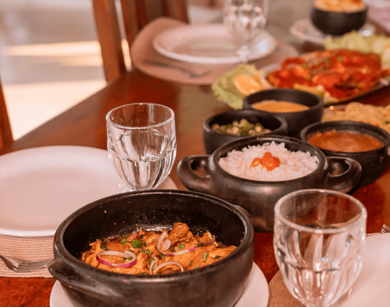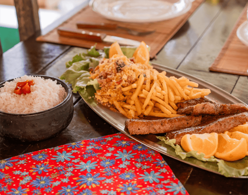Nosso restaurante oferece opções à la carte de surubim, dourado, tucunaré, picanha e o tradicional frango caipira – servido com acompanhamentos como quiabo e angu de milho verde.
